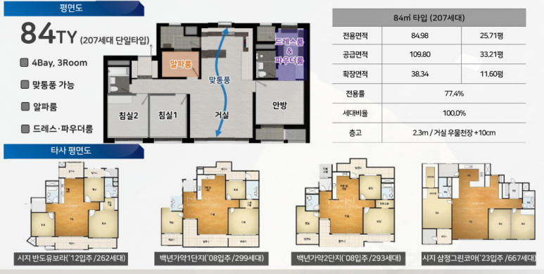 84㎡ 단일 타입, 실수요자 선호 높은 구조