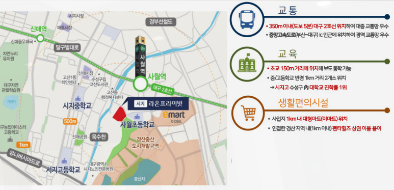 대구 시지 라온프라이브는 교통·교육·생활 인프라 3박자를 모두 갖춘 단지로, 특히 수성구라는 지역적 가치와 더불어 실수요 중심의 주거 안정성을 동시에 확보할 수 있는 곳입니다.